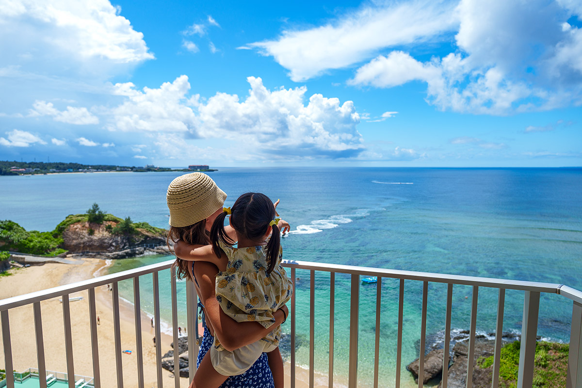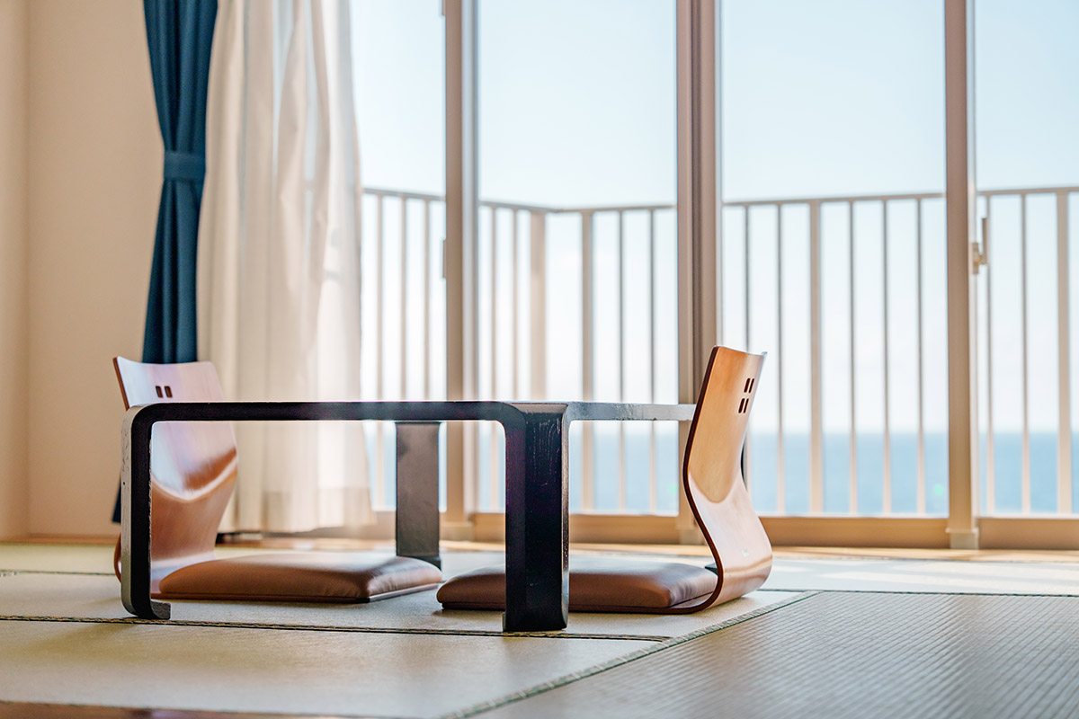 全室オーシャンビュー、バルコニー付きの広々とした和洋室。