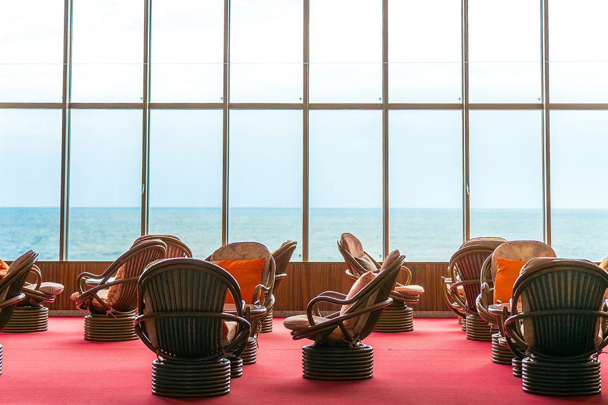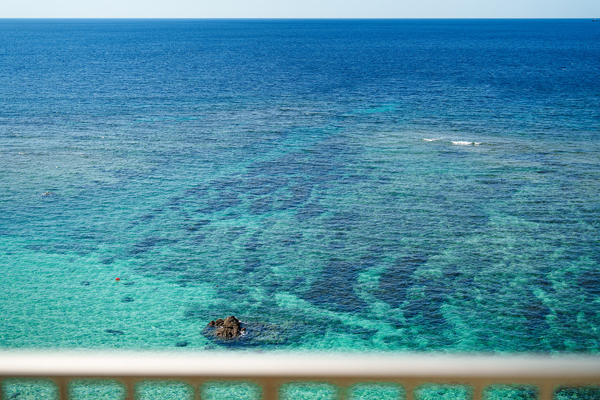 正面に美しい珊瑚礁の海を一望できる開放的な特別な空間。フロントからすぐ近くのラウンジはオーシャンビューのパノラマを見渡せる特等席。チェックイン・チェックアウトの前のひとときをお過ごしください。